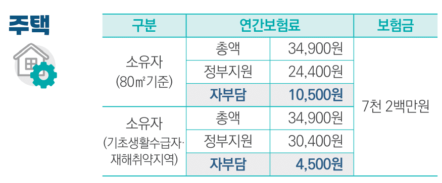 이처럼 정부 지원금을 제외한 자부담금에 대한 부담이 거의 없는 금액으로 차후 있을 재산피해를 충분히 보상받을 수 있고 든든한 보장이 되는 정부 정책인 것은 분명합니다.